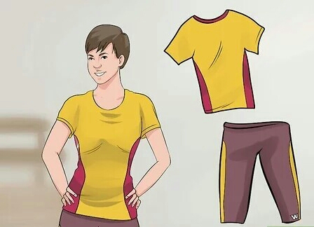 سوف تحتاج إلى ارتداء الملابس التي لن تقيد تحركاتك أو تدفق الدم. لا ترتدي الملابس الضيقة جدا، خاصة حول المفاصل. سوف تحتاج أيضا إلى ارتداء الملابس التي هي مصنوعة من المواد التي يتنفس بشكل جيد، لأنك سوف عرق عند القيام بأشكال كثيرة من التمارين الرياضية. يمكن العثور على الملابس المصممة خصيصا لممارسة التمارين الرياضية بسهولة.